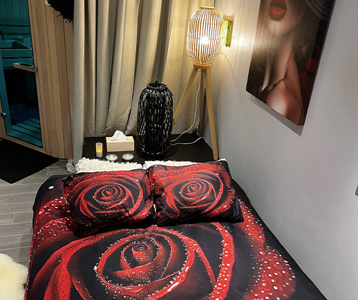 Pensée comme un cocon intime, cette love room invite les couples à vivre une parenthèse enchantée, où douceur, élégance et sensualité se mêlent avec harmonie.