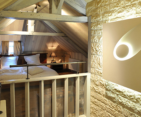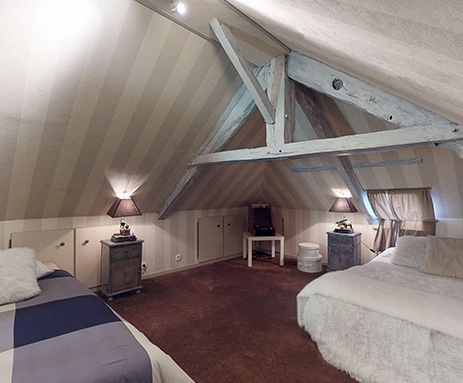 Le Dortoir est un espace sous combles situé au deuxième étage de la maison de maitre entièrement rénovée. Idéal pour un couple ou des enfants. Cet espace ne se loue pas seul mais en complément de la capacité de la suite "Histoires Naturelles" afin de créer un espace global de 9 personnes.